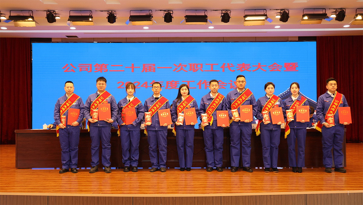 公司領(lǐng)導(dǎo)為獲得表彰的先進(jìn)個(gè)人和先進(jìn)集體代表頒獎(jiǎng)