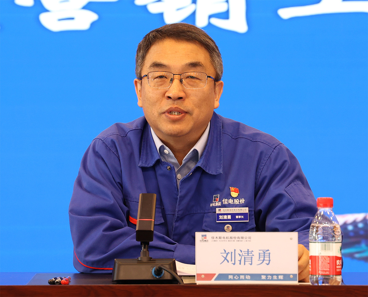 為扎實(shí)貫徹落實(shí)哈電集團(tuán)2024年戰(zhàn)略安排,2月16日,哈電集團(tuán)佳木斯電機(jī)股份有限公司(以下簡稱“佳電股份”)召開2024年度營銷工作會議。哈電集團(tuán)黨委常委、副總經(jīng)理,佳電股份董事長劉清勇,佳電股份黨委書記、總經(jīng)理劉漢成,佳電股份副總經(jīng)理安文舉及相關(guān)部門負(fù)責(zé)人出席會議,銷售公司全體職工參加會議。