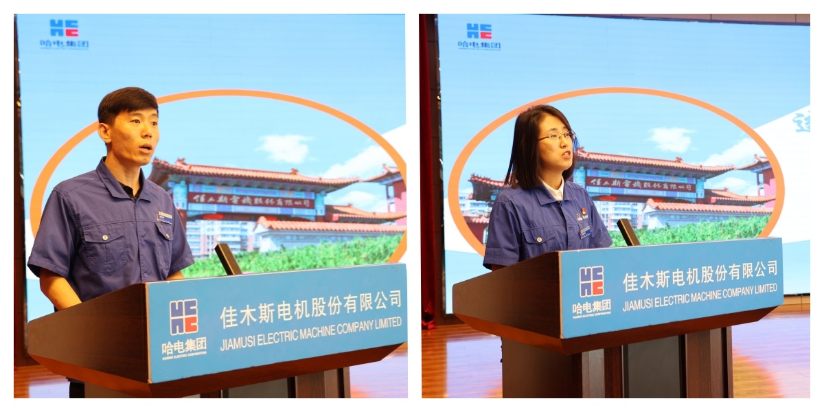 在入職儀式上,黃少雷、王艷章、左巖雪、樊傳平等4名新員工代表進(jìn)行發(fā)言。他們講述了認(rèn)識(shí)佳電、融入佳電的過程和感受,從他們身上看到了新一代佳電青年勤于學(xué)習(xí)、務(wù)實(shí)肯干的精神面貌,感受到了新一代佳電青年奮發(fā)進(jìn)取、追求進(jìn)步的蓬勃朝氣。