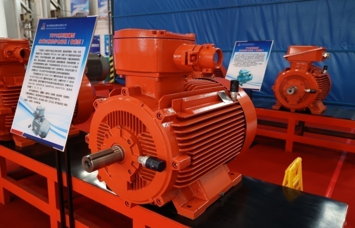 本次發(fā)布會(huì)展出的TBYC系列高效率隔爆型永磁三相同步電動(dòng)機(jī)(智能型)、TYC系列永磁三相同步電動(dòng)機(jī)(智能型)產(chǎn)品,依靠永磁體所提供的磁能替代了傳統(tǒng)電機(jī)電勵(lì)磁產(chǎn)生的磁能,具備電機(jī)損耗低、運(yùn)行可靠性高的特點(diǎn)。在負(fù)載較低時(shí),產(chǎn)品仍可保持較高的運(yùn)行效率和功率因數(shù),解決了機(jī)械設(shè)備在低負(fù)荷時(shí)能耗消耗大的問題。其中部分規(guī)格可配備智能監(jiān)測終端產(chǎn)品,可實(shí)時(shí)采集加速度、速度、溫度等狀態(tài)數(shù)據(jù),內(nèi)置邊緣智能感知算法,可提供設(shè)備概覽、實(shí)時(shí)狀態(tài)監(jiān)測、智能故障診斷、早期故障預(yù)警、全生命周期管理等核心服務(wù)。同時(shí),產(chǎn)品效率指標(biāo)能夠滿足1級(jí)能效要求,在電動(dòng)機(jī)的整個(gè)生命周期內(nèi),可以為用戶節(jié)約可觀的電費(fèi)以及各種設(shè)施配套費(fèi)用,是工信部“能效之星”推薦產(chǎn)品,可應(yīng)用于石油化工、電力系統(tǒng)、紡織、工礦企業(yè)以及拖動(dòng)風(fēng)機(jī)、泵類等機(jī)械。