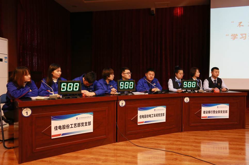 為深入學(xué)習(xí)習(xí)近平新時(shí)代中國特色社會主義思想和黨的十九屆四中全會精神,加深廣大黨員對黨的歷史、黨的基本理論、基本路線和基本方略的認(rèn)識和理解,鞏固和強(qiáng)化“不忘初心、牢記使命”主題教育取得成果,11月29日下午,哈電集團(tuán)佳木斯電機(jī)股份有限公司黨委(以下簡稱“佳電股份黨委”)與中國建設(shè)銀行股份有限公司佳木斯分行黨委(以下簡稱“建行佳木斯分行黨委”),在佳電股份會議室共同舉辦了“不忘初心、牢記使命”主題教育“學(xué)習(xí)強(qiáng)國杯”黨建知識競賽。